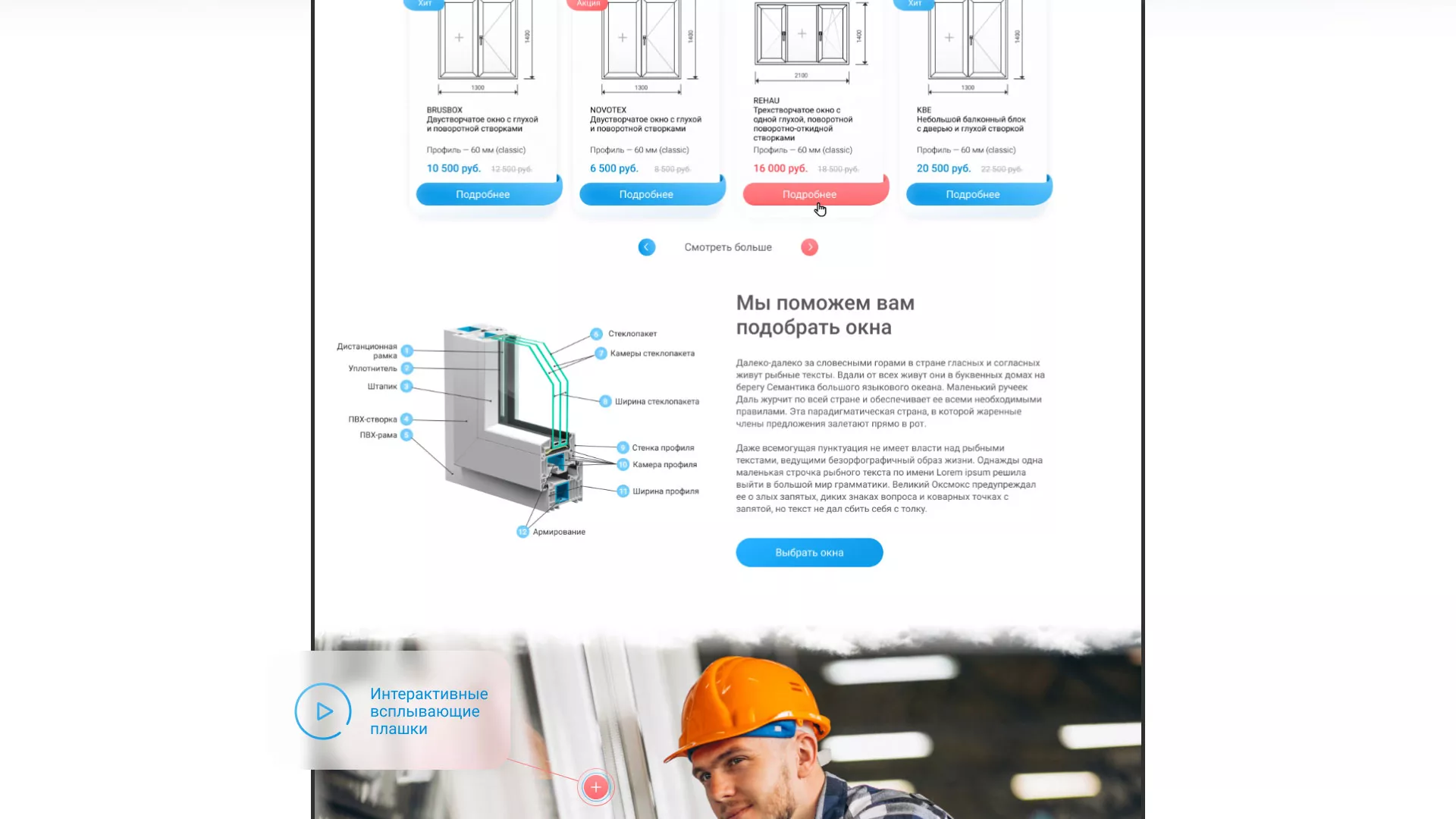 Задачей по проекту было — разработать светлый, дружелюбный дизайн сайта-каталога компании «Окна ВИДО» в Реже, интерфейс взаимодействия с пользователем и проработать внутренние страницы, наглядно отобразив информацию иллюстрациями.